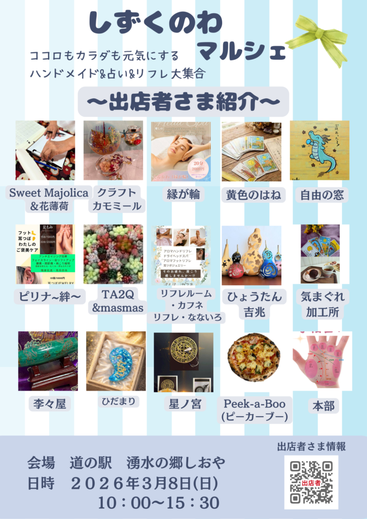 Sweet Majolicaはハンドマッサージとヘッドマッサージ、花薄荷は占いでの出店となります。